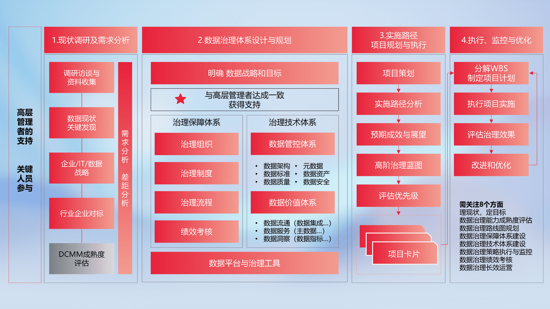 制定并执行统一的数据标准,,,规范数据定义和格式,,,,消除冗余和不一致性,,实现跨部门和跨系统的数据一致性,,,为企业提供标准化的数据基础。。。